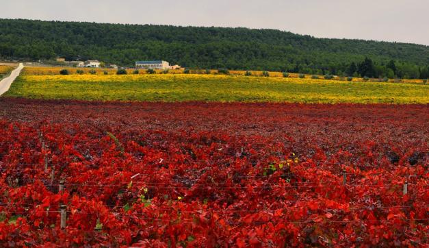 En este momento cultivamos uvas mediterráneas en 42 hectáreas de viñedo en propiedad y otras 36 hectáreas en arrendamiento o contratos de larga duración sobre varias parcelas de suelos calizos (a unos 600 m de altitud) en nuestro pueblo, Moixent (Terres dels Alforins. D.O.P. Valencia).