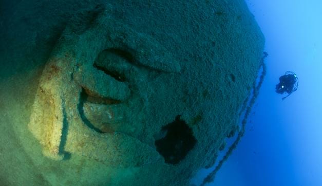A British steam freighter sunk in 1917 by the ruthless action of the U-64, a well-known German submarine that wrought terror on Mediterranean sailing routes, this shipwreck rests in two halves, at a maximum depth of -33 metres on a bed of sand. Its general degree of difficulty means that it is advisable to leave this dive to experienced divers, who can enjoy the majestic keel, propeller and starboard anchor when visibility is favourable.