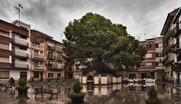 Alrededor del árbol centenario se ha construido una fuente. En el basamento donde se ubica dicha fuente, Manolo Rodríguez Vázquez, escultor nacido en Navajas, realizó un relieve en bronce que representa los juegos de los niños en la plaza.